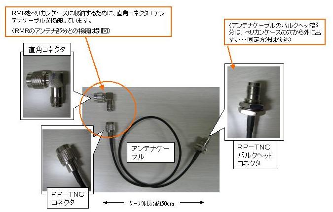 - 内蔵するRMRやバッテリーと干渉しない位置にします。ケース内側にアンテナケーブルのコネクターが出っ張ります。