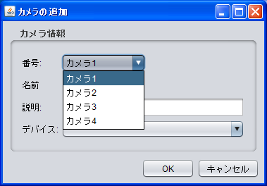 新しいウィンドウが表示されるので、ここで追加したいカメラ番号を選びます、1から4まであります。