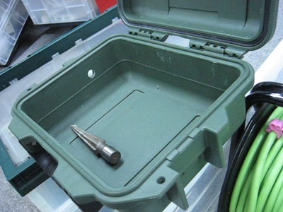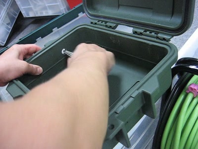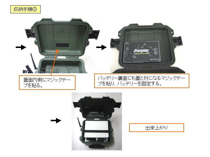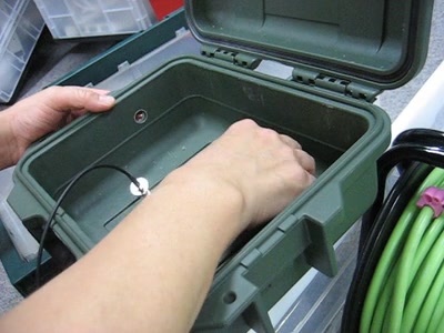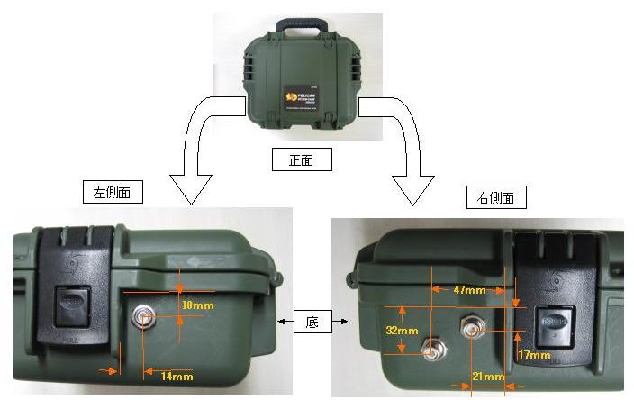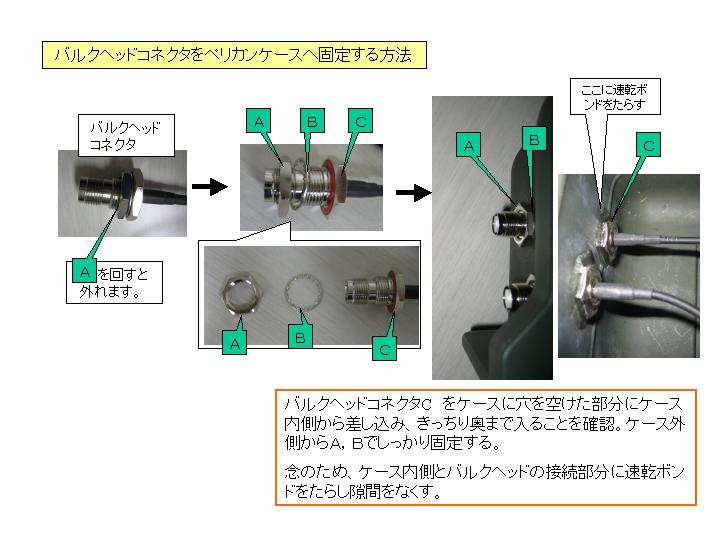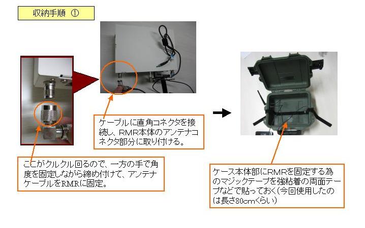 - 内蔵するRMRやバッテリーと干渉しない位置にします。ケース内側にアンテナケーブルのコネクターが出っ張ります。
