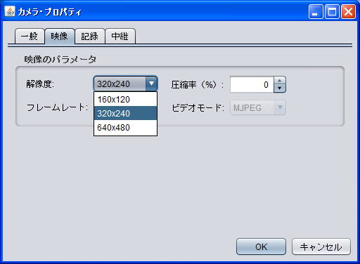 出来れば「320x240」を選びましょう。フレームレートや圧縮率の設定も変えられます。